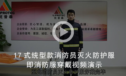 优普泰-17式统型款消防员灭火防护服(消防服)穿戴视频演示