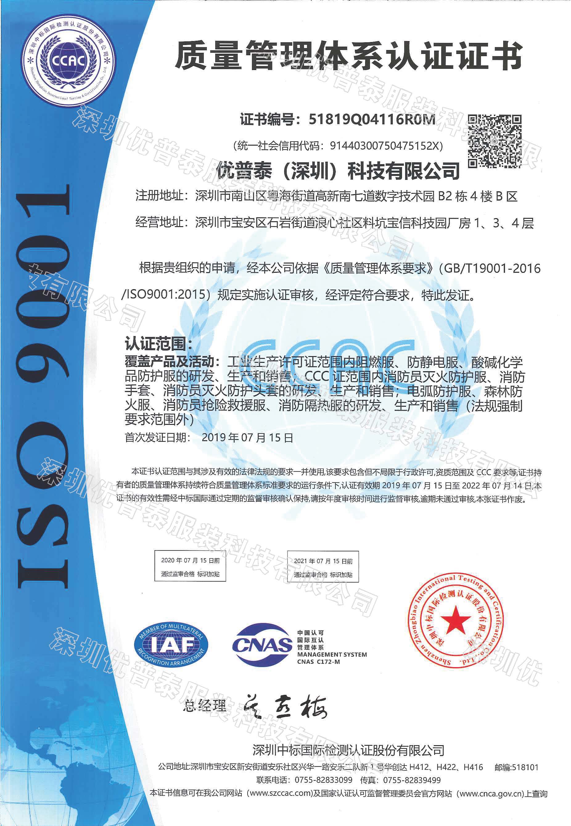 ISO9001质量管理体系认证证书