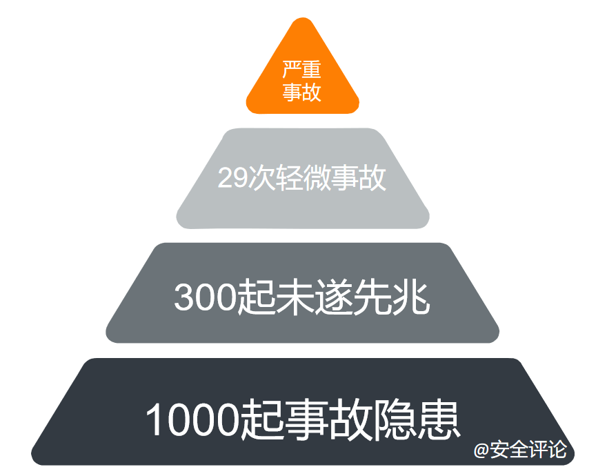 大家也都知道的海恩法则:是德国飞机涡轮机的发明者德国人帕布斯·海恩提出的关于安全法则,海恩法则指出:每一起严重事故的背后,必然有29次轻微事故和300起未遂先兆以及1000起事故隐患。
