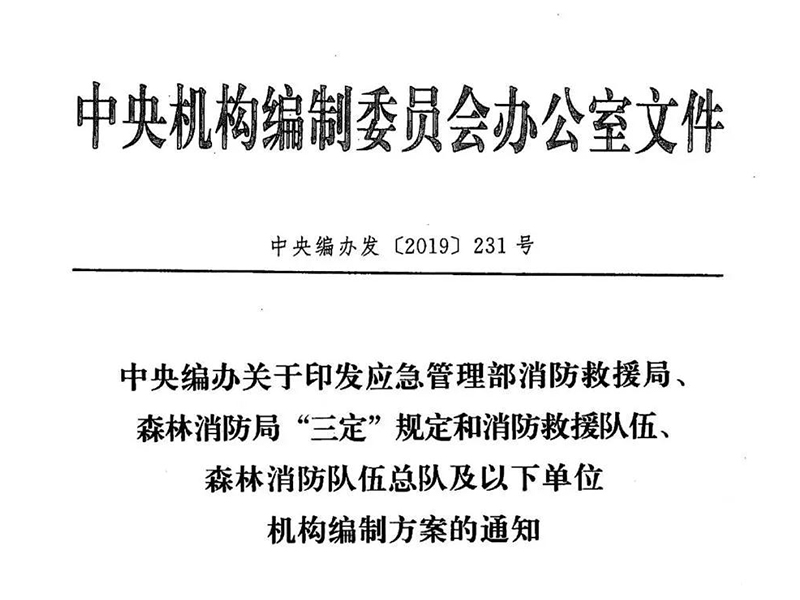 2019-11-29 16:01:01 - 阅刚刚,中央编办印发了应急管理部消防救援局、森林消防局“三定”规定和消防救援队伍、森林消防队伍总队及以下单位机构编制方案的通知。