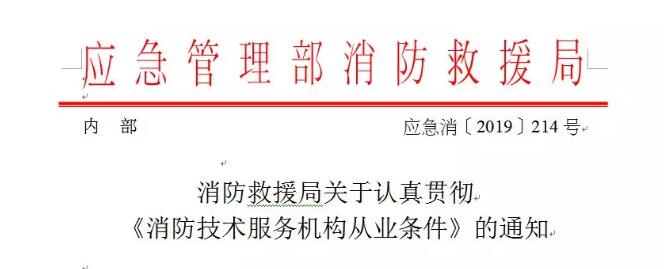 2020-04-02 09:49:06 - 阅近日,消防救援局发布关于认真贯彻《消防技术服务机构从业条件》的通知,通知提出:停止消防技术服务机构资质许可工作。已受理消防技术服务机构资质许可申请的,要立即停止审批、退回申请材料,并做好政策解释。
