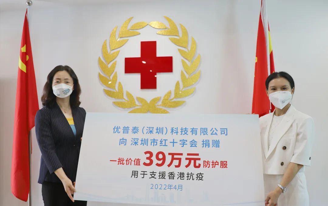 2022-04-18 - 阅4月15日,优普泰(深圳)科技有限公司向深圳市红十字会捐赠10000件医用一次性隔离衣(防护服),市红十字会第一时间将该批物资转赠给香港青年联会用于支援香港抗疫。深圳市红十字会党组