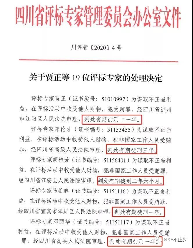 4家单位二级安全标准化被撤销、一次性通报26名评标专家,11人被判刑!