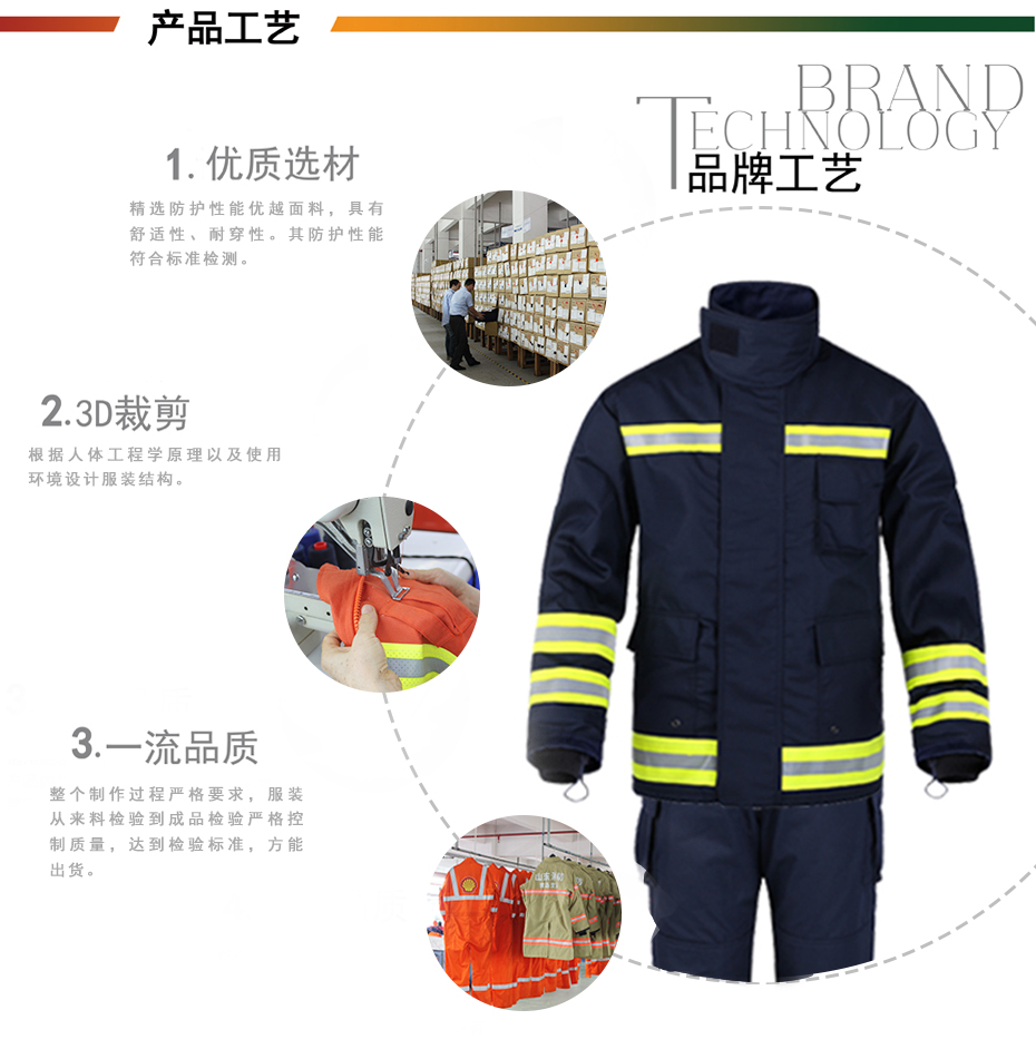 用途:本服装适用于结构性火灾消防人员灭火救援时的防护穿着。